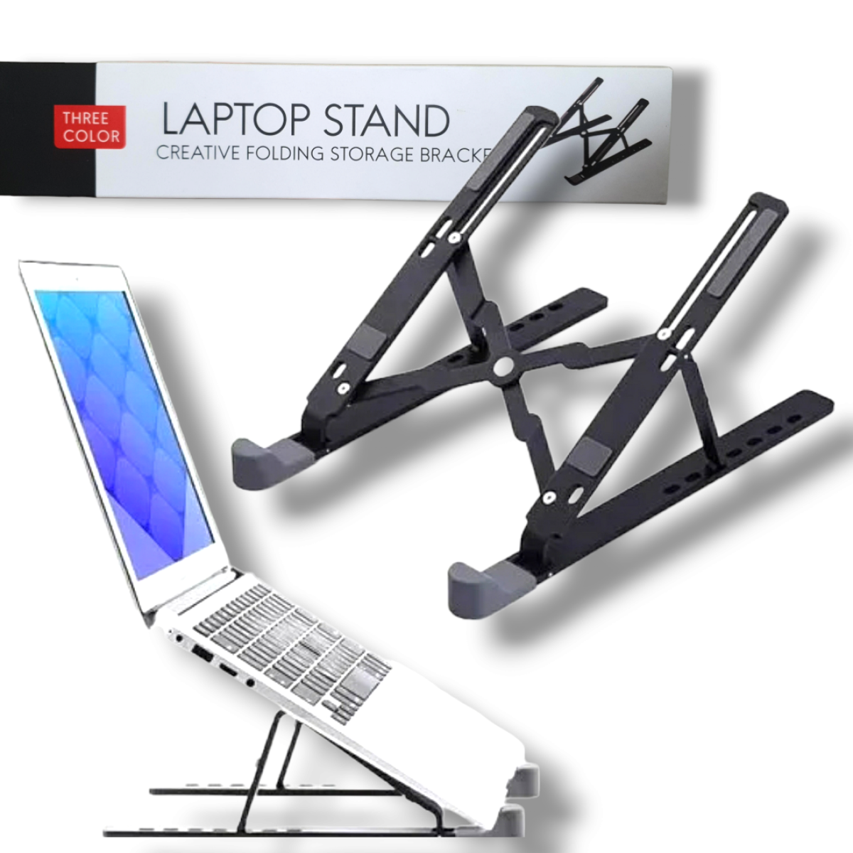 Soporte universal ajustable para que puedas colocar cualquier tipo de notebook o tablet en el y hacer tus actividades de una manera mas cómoda.